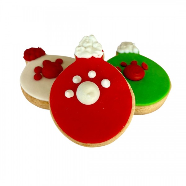 EN Dolci Impronte Tray 8 Christmas Balls Red and Green 270g – Vacuum-sealed tray containing 8 hand-decorated Christmas ball-shaped biscuits (8cm), in red or green, made one by one in our artisan workshop – Tray size: 28x20cm – Best before 9 months from production lot date – Once opened, keep away from direct light and heat – No refrigeration required – Complementary feed for adult dogs – Characteristics: decorated biscuit – Composition: cereal flour (soft wheat), fructose, pasteurized eggs, vegetable margarine, sucrose, glucose syrup, honey, vegetable oils and fats, corn starch, mono- and diglycerides of fatty acids, glycerin – Technological additives: preservatives (sorbic acid 1a200, potassium sorbate 1k202, citric acid 1a330), emulsifiers, antioxidants – Sensory additives: flavouring – Analytical constituents: crude protein 8%, crude fibre 1.9%, crude fat 11%, crude ash 0.56%, moisture 14% – Directions for use: serve with fresh water available, up to 10% of total daily ration; the dosage is indicative – Adjust according to physical activity, age, breed, individual condition and climate – Once opened, store in a cool, dry place – Produced for Fifty S.r.l., Venezia 30124, San Marco 5278, info@dolcimpronte.it, at facility IT900011VE.