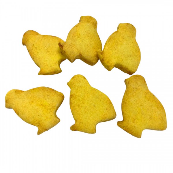 FR Dolci Impronte - Pâques - Poussin 38g 7x7cm, décoré à la main Aliment complémentaire pour chiens adultes. Caractéristiques : biscuit en pâte sablée décoré. Composition : farine (blé tendre), fructose, œufs pasteurisés, margarine végétale, saccharose, sirop de glucose, miel, huiles et graisses végétales, mono- et diglycérides d’acides gras, glycérol....