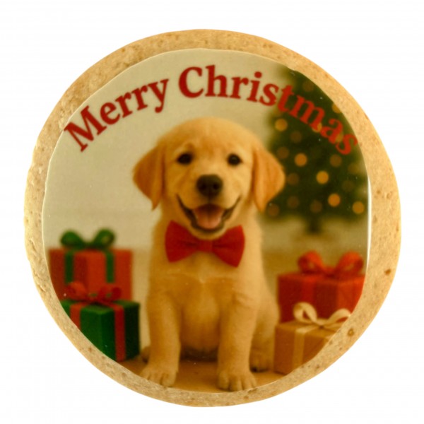 Sacchetto cristal con nastro rosso personalizzato Dolci Impronte, contenente un Osso Merry Christmas con stampa alimentare su cialda, 12cm. Consumare preferibilmente entro 9 mesi dalla data del lotto di produzione. A confezione aperta tenere i prodotti lontani da luce diretta e fonti di calore. Non necessitano di refrigerazione. Alimento complementare...